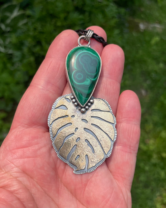 Malachite and Monstera Pendant